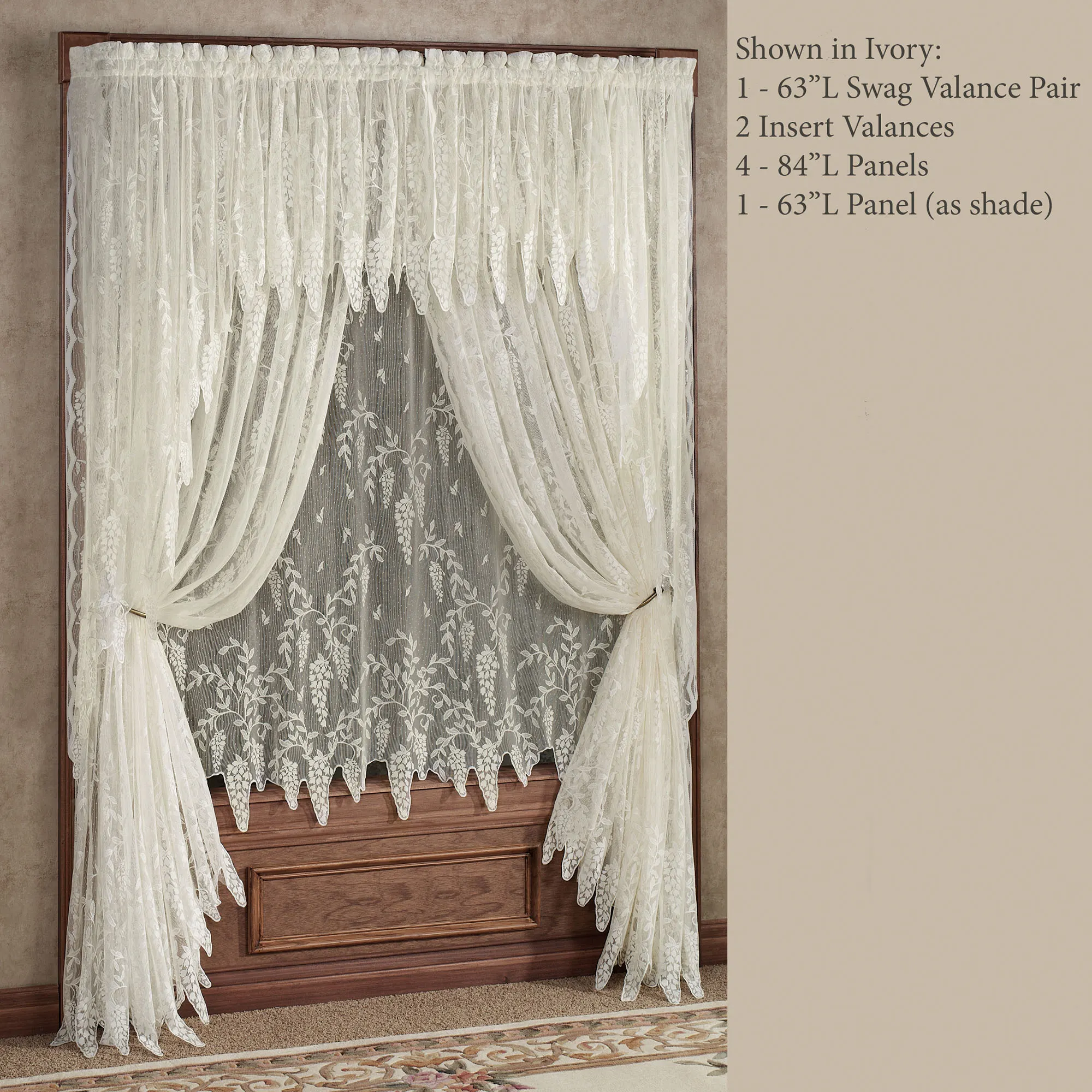 Wisteria Lace Curtain Panel and Valence