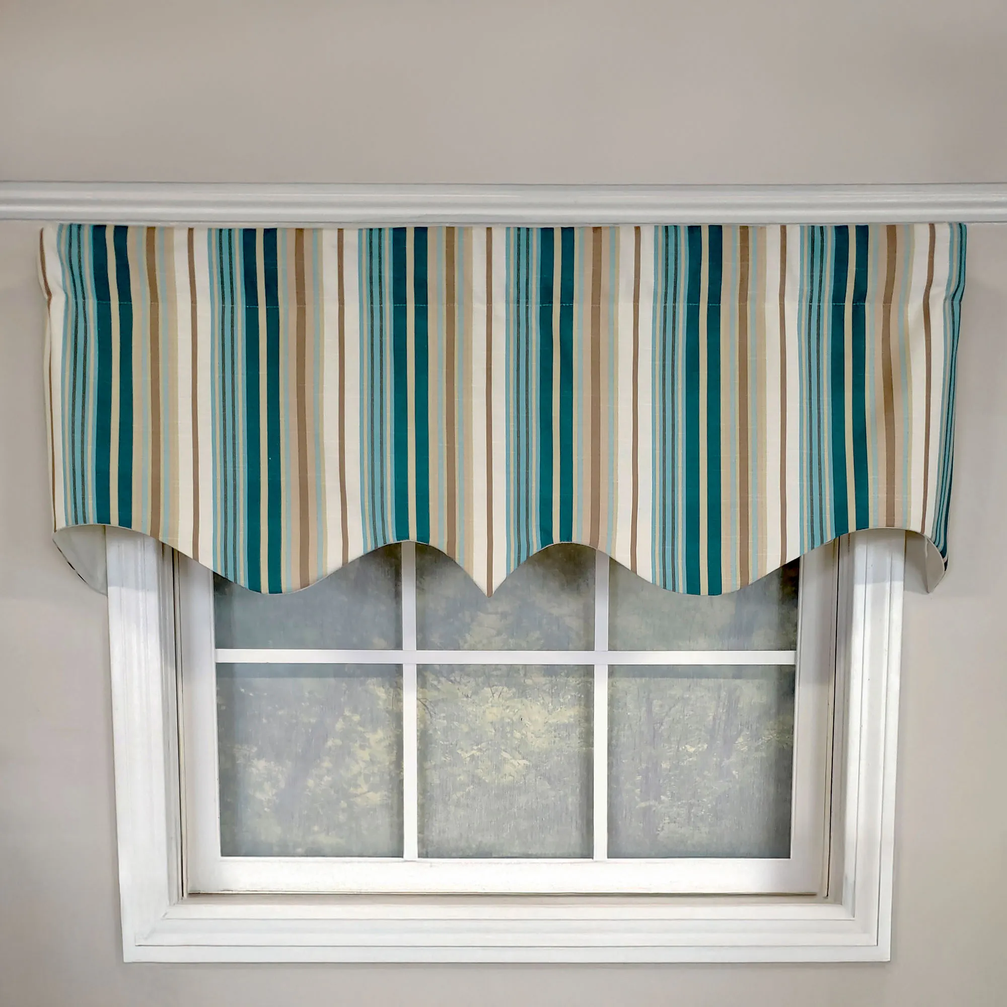 • Lined valance with a vertical stripe pattern