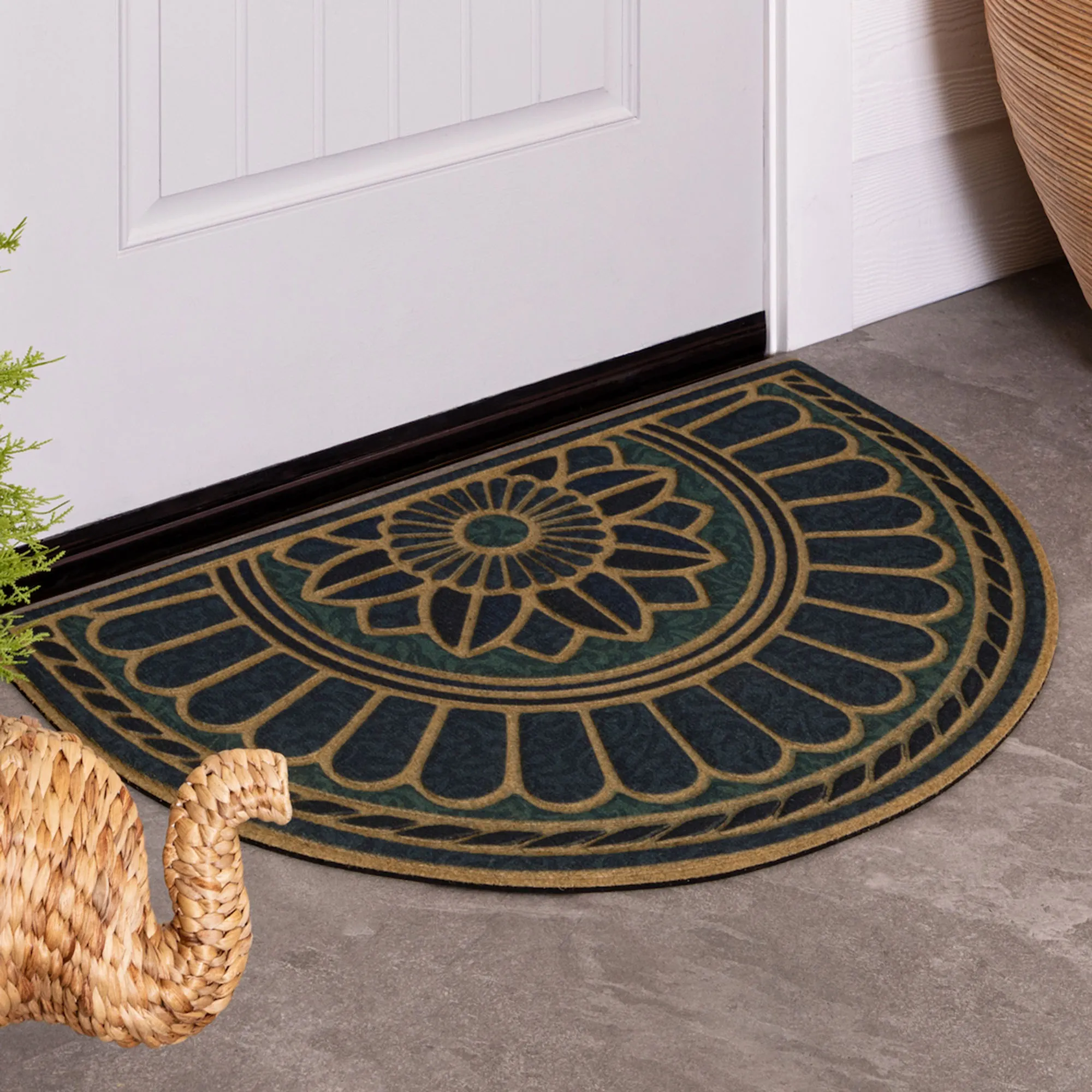 Witton Deep Blue and Green Medallion Indoor Outdoor Slice Doormat