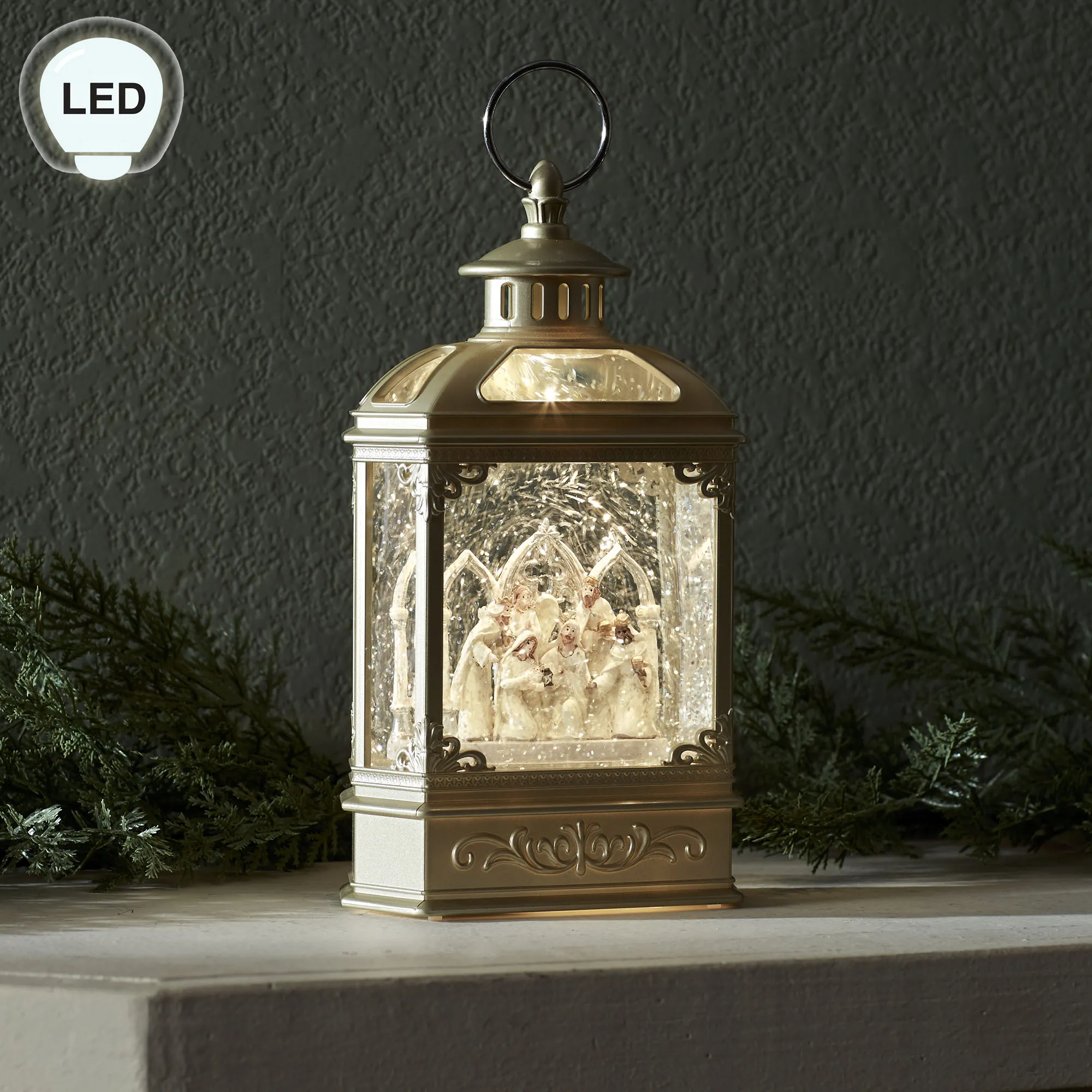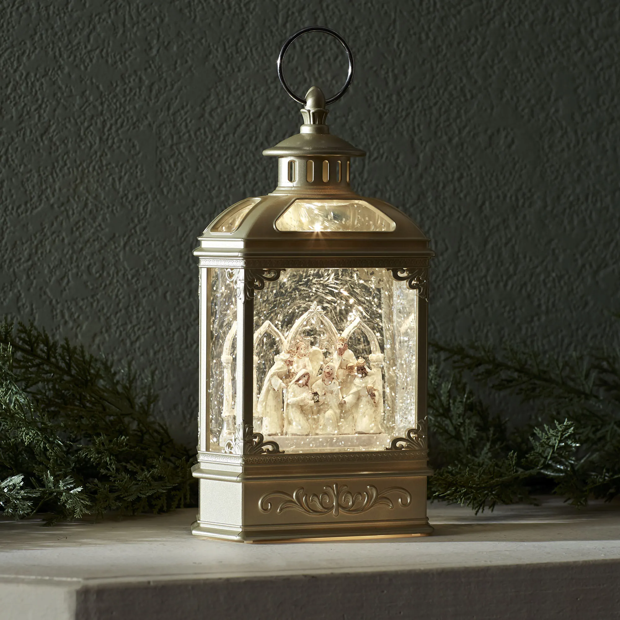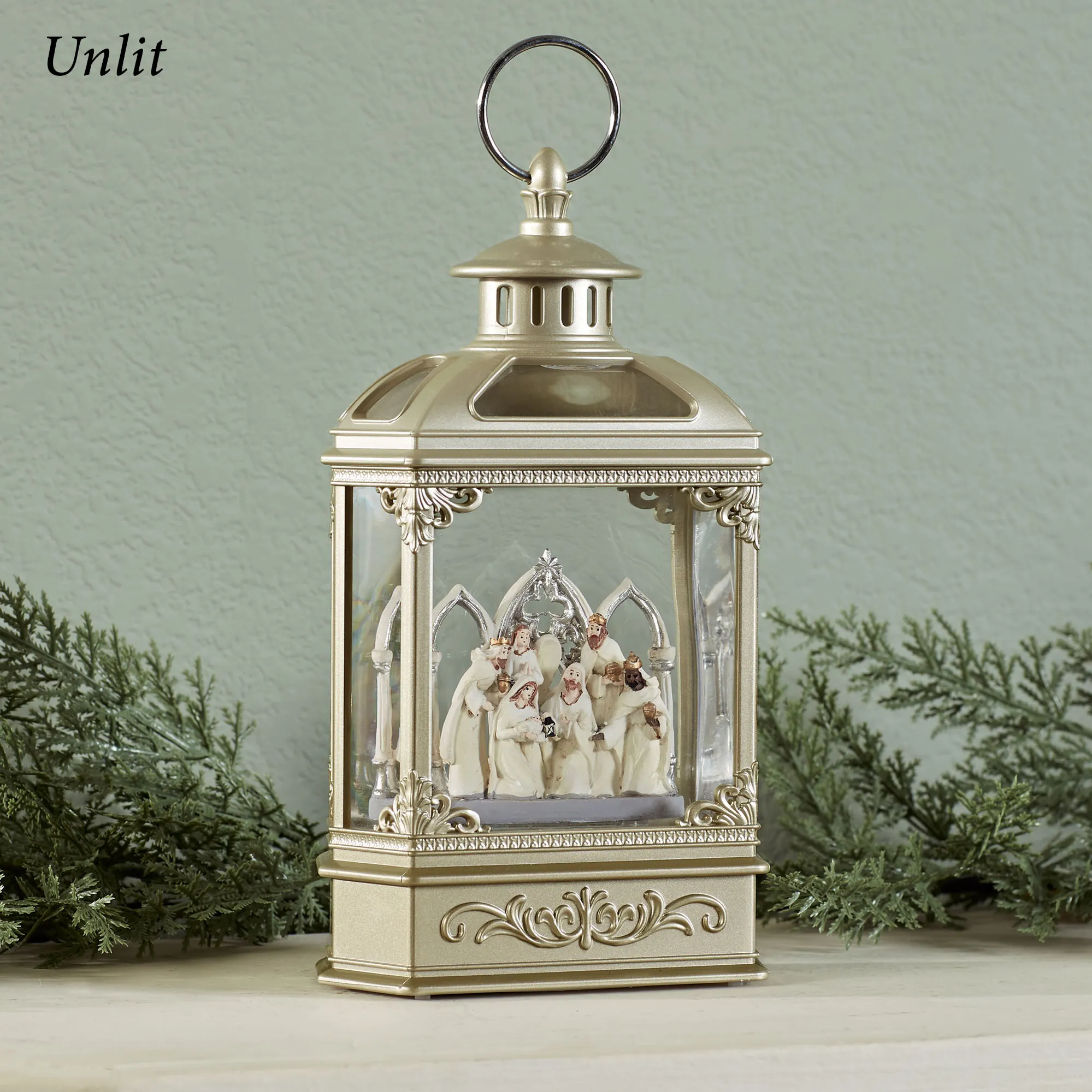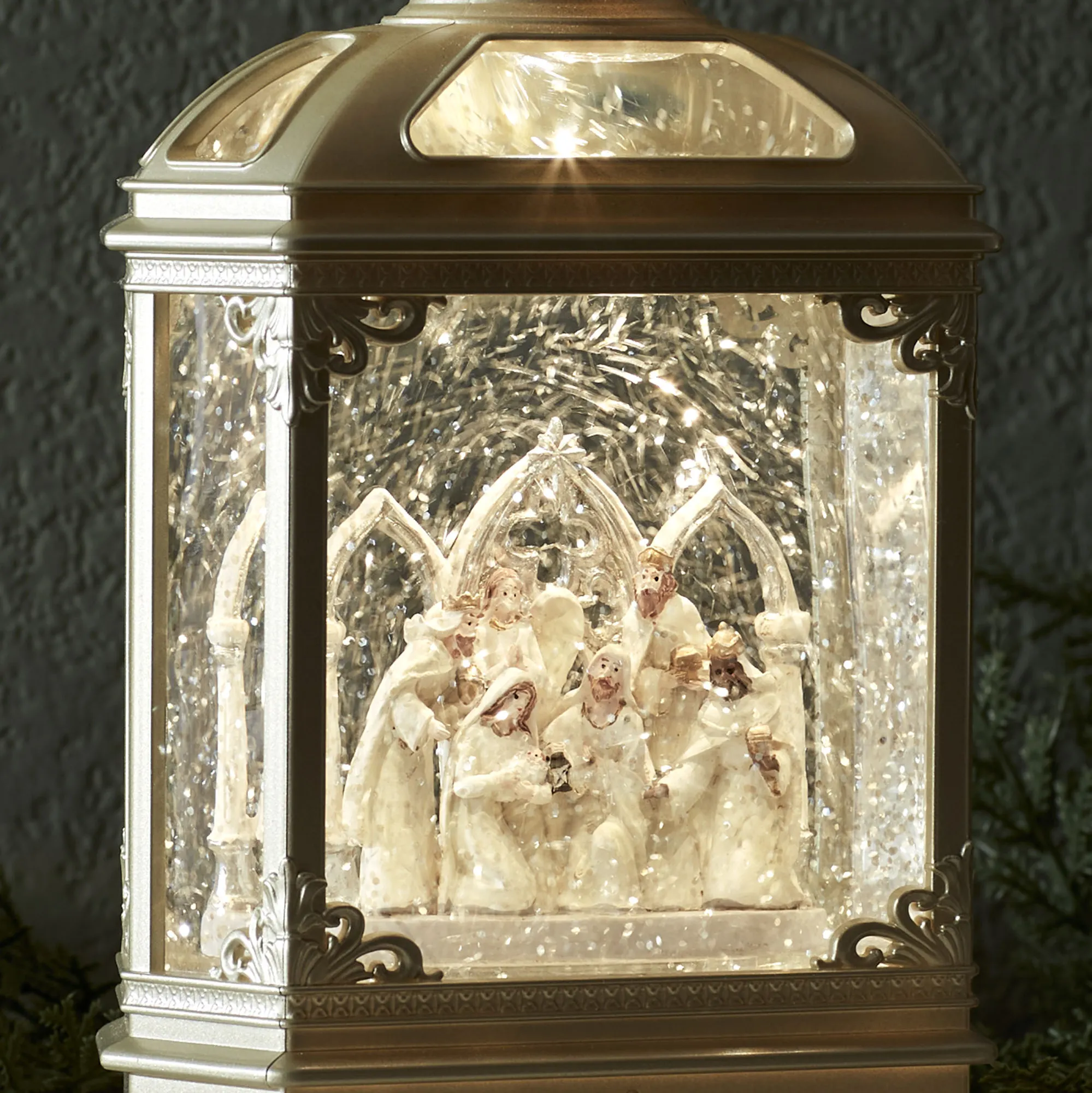 Worshiping Christmas Nativity Swirl LED Lighted Lantern Glitter Globe