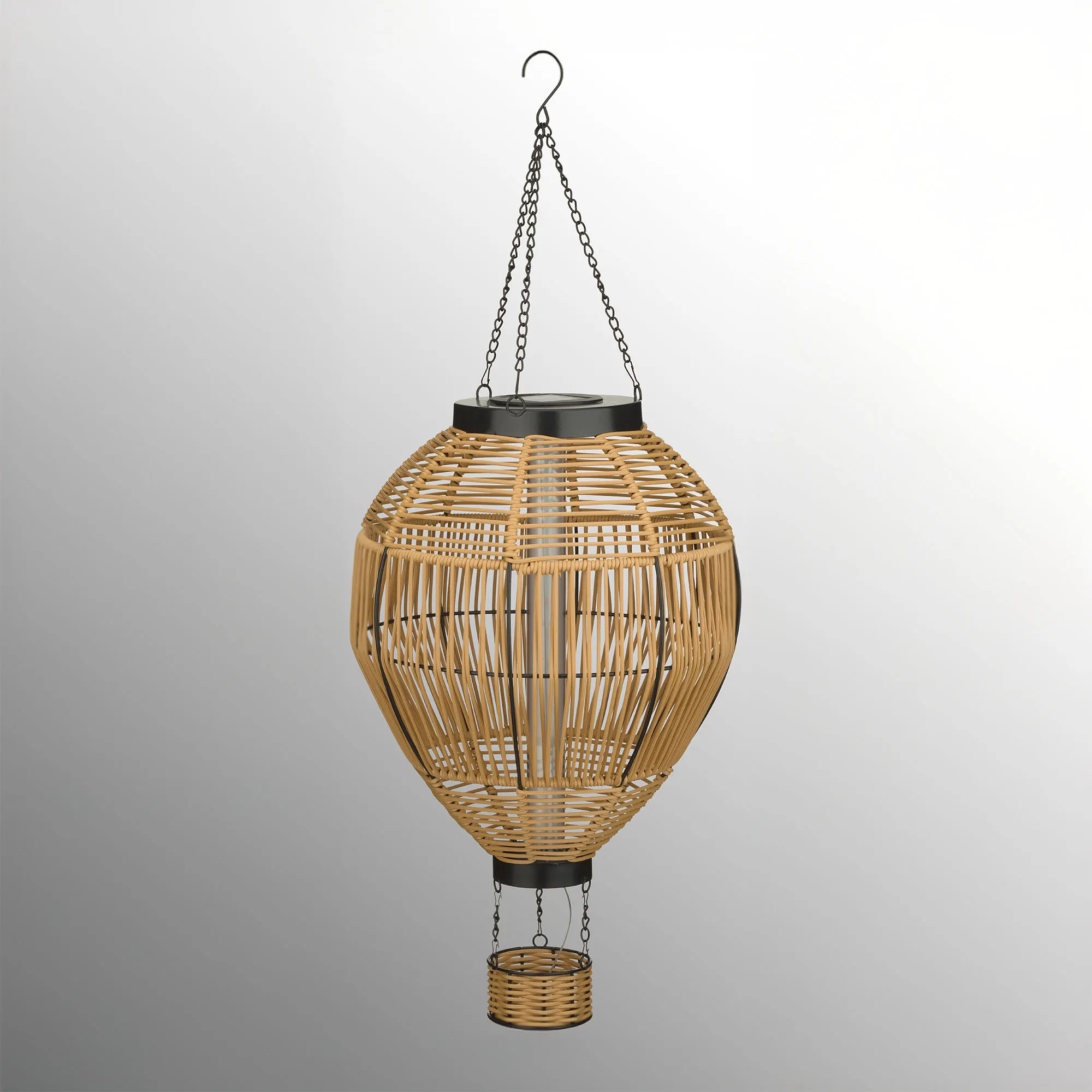 • Natural, hand-woven wicker solar hot air balloon