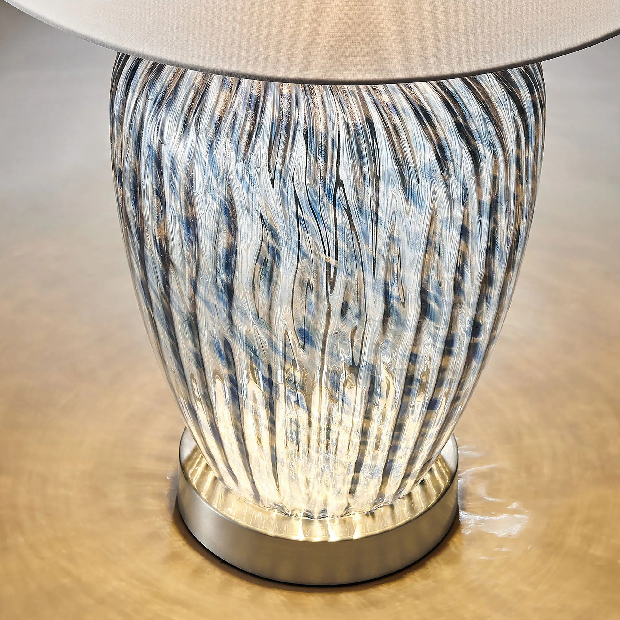 Wyatt Clear and Blue Swirl Fluted Glass Table Lamp with Nightlight Font