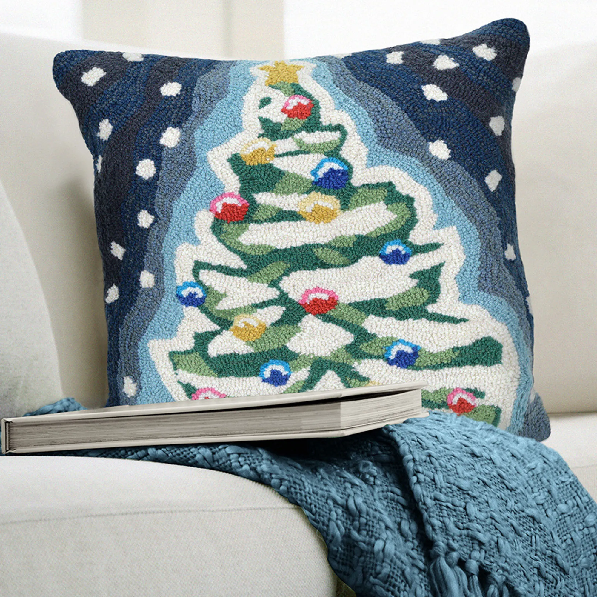 The Xmas Tree Holiday Pillow is polyacrylic with a polyester back and polyester fill. Imported.