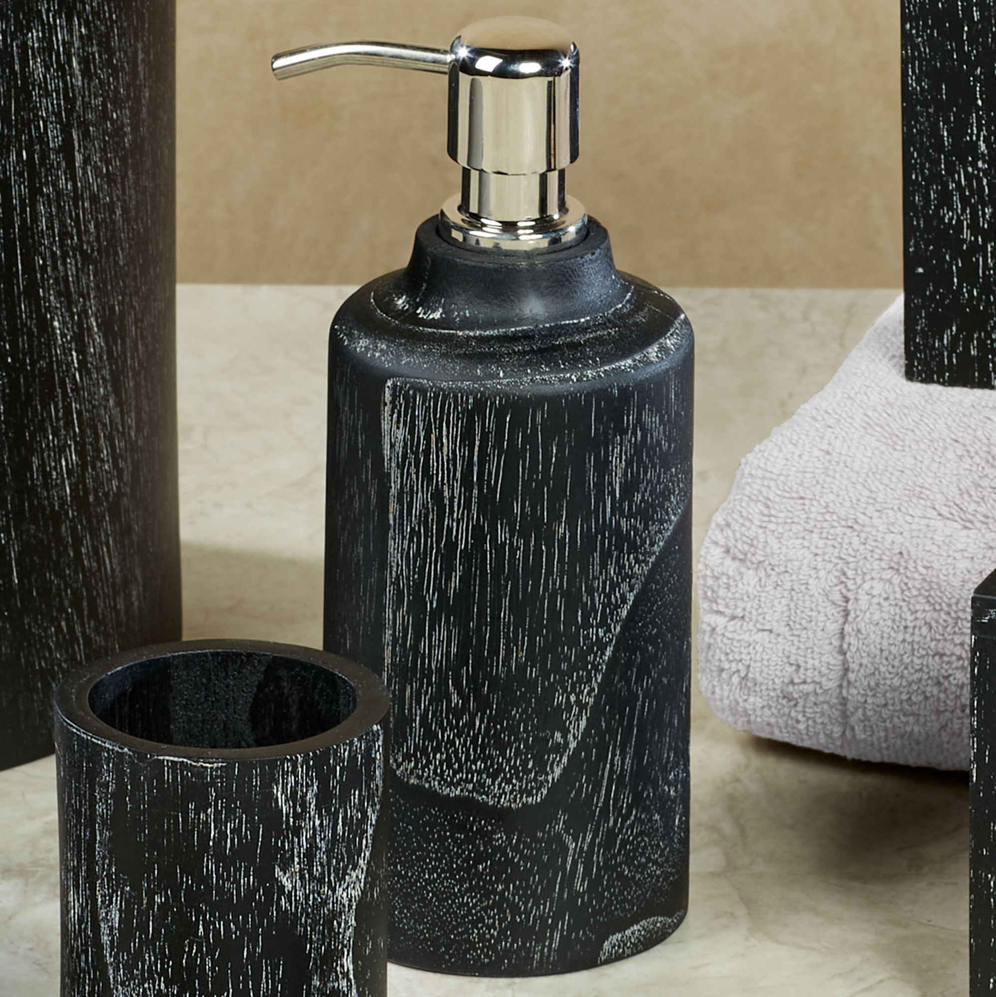 The Yosemite Bath Accessories have a naturally striking look. Made of black wood, these bath essentials have woodgrain patterns. Brush Holder can hold toothbrushes or makeup brushes. Specify Lotion/Soap Dispenser, Tray, Covered Jar, Brush Holder, Tumbler, or Soap Dish. Sorry, the rest of the accessories are no longer available.