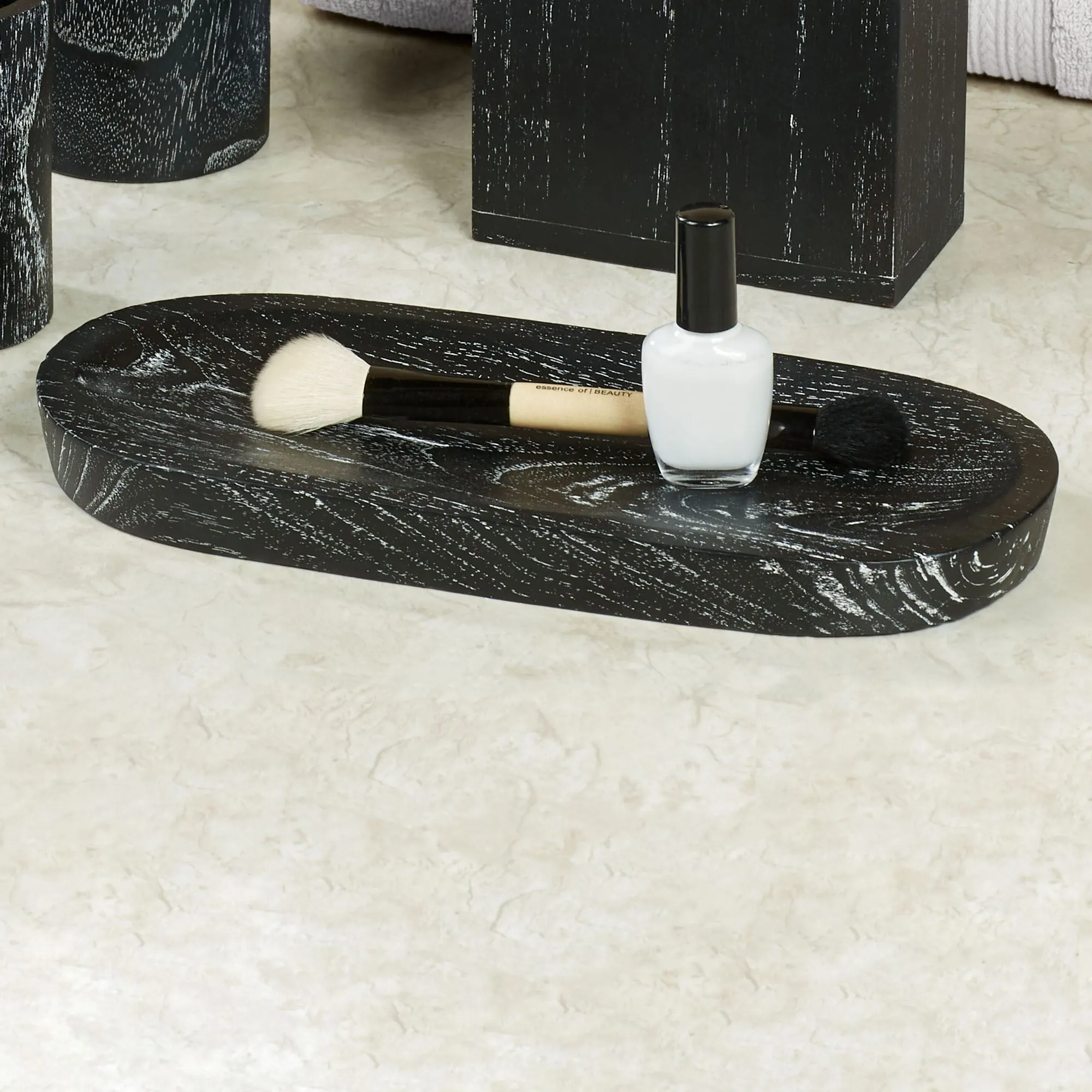 • Black wood bath accessories